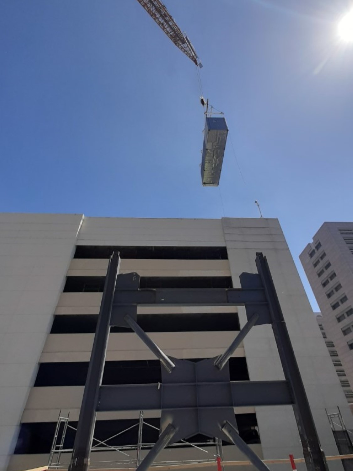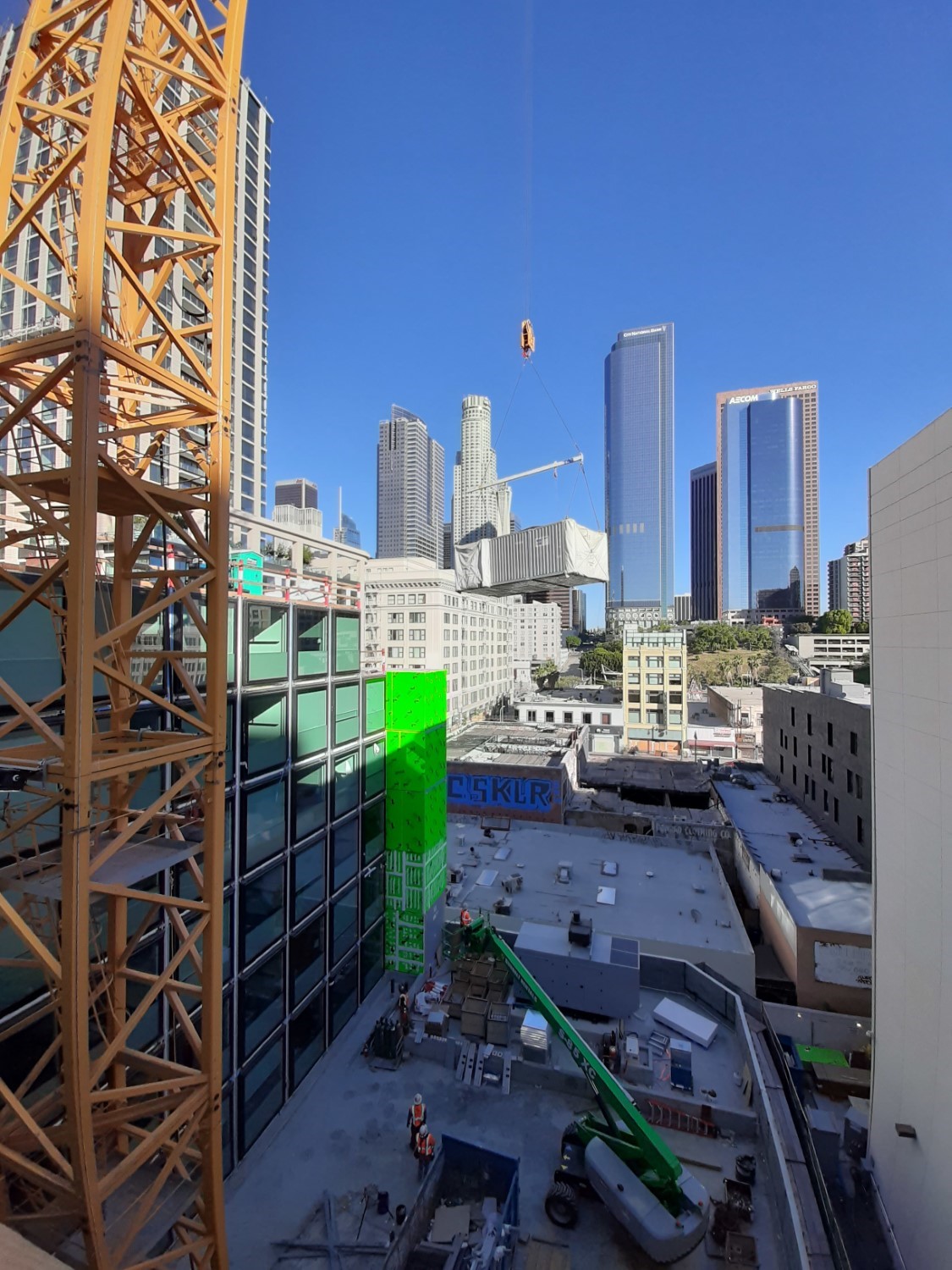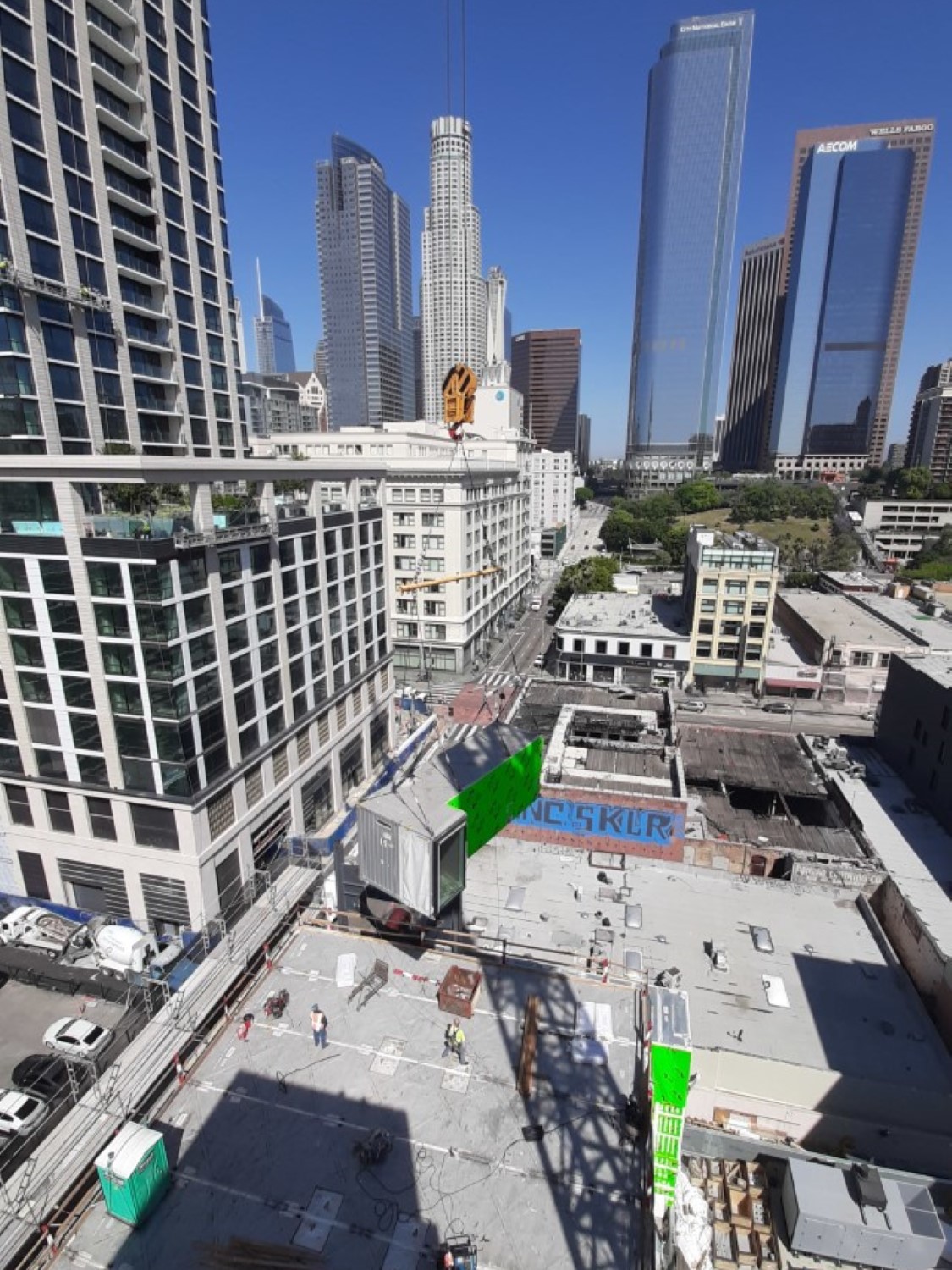 The citizenM Los Angeles Downtown, an 11-story, 315-guest room building, was predominantly constructed from prefabricated modular units shipped from abroad. Mortensen enlisted JD2 for the project, and our team came up with an innovative solution to bring the units from 'shipper' status to 'ready to install' status. We designed custom spreader beam assemblies for each unit size and fabricated all the structural steel. We're thrilled to have been part of yet another architecturally groundbreaking project. If you need expert steel erection services, including out-of-the-box projects like this one, JD2 is the partner to call.