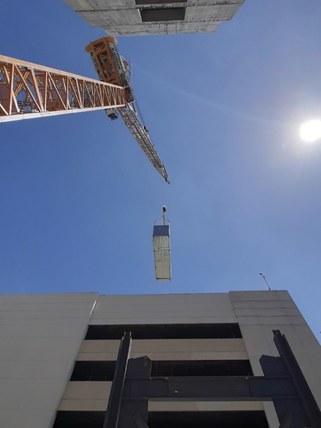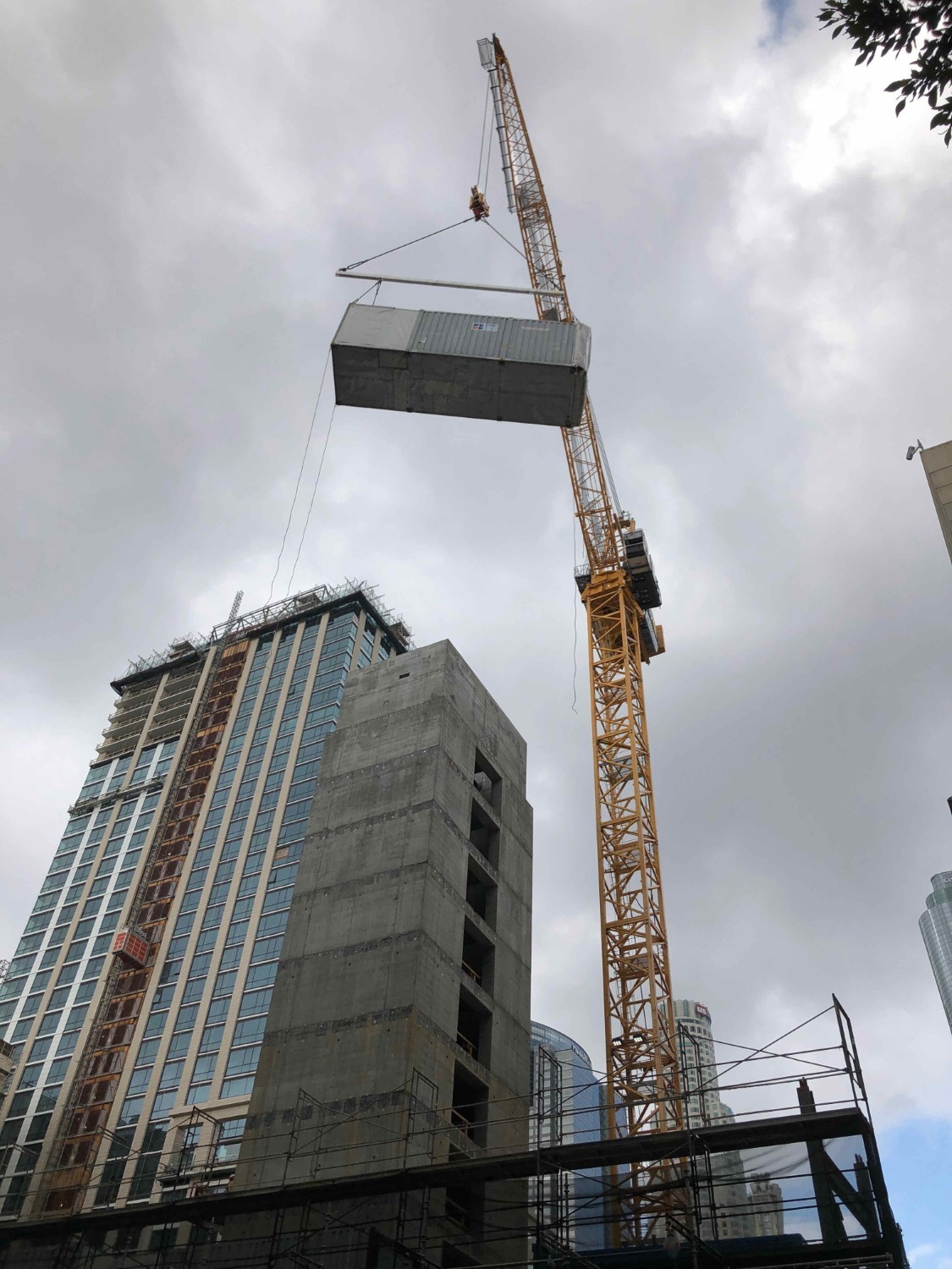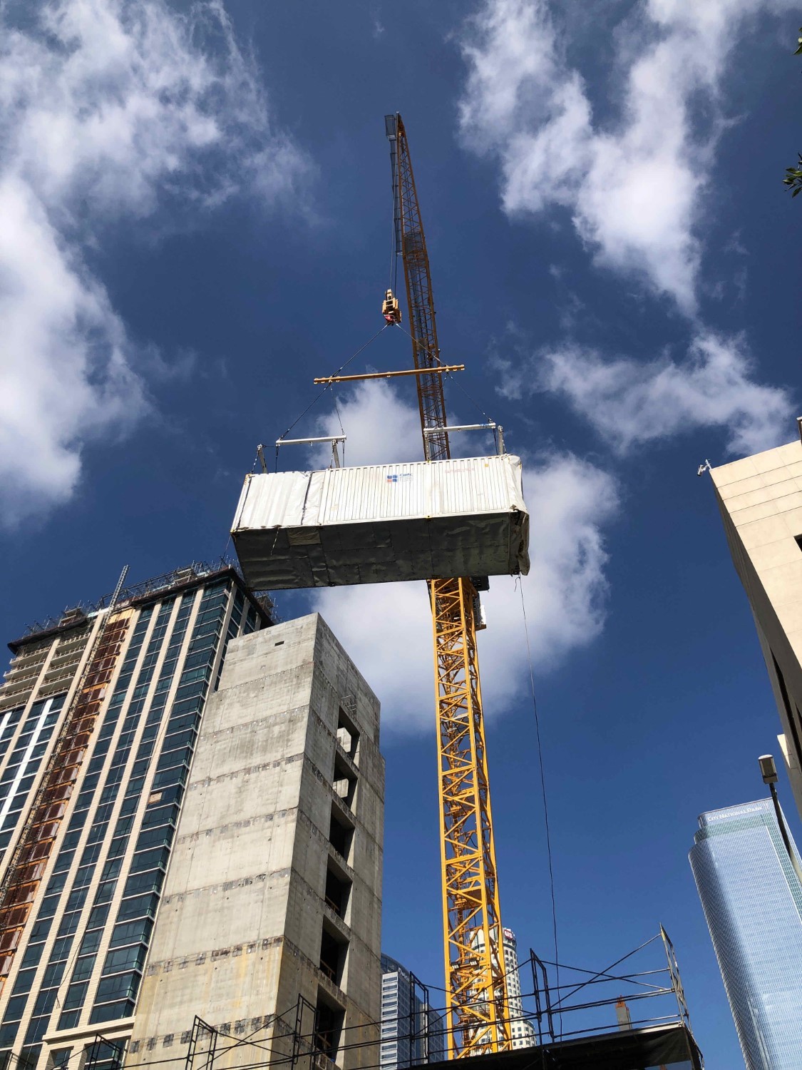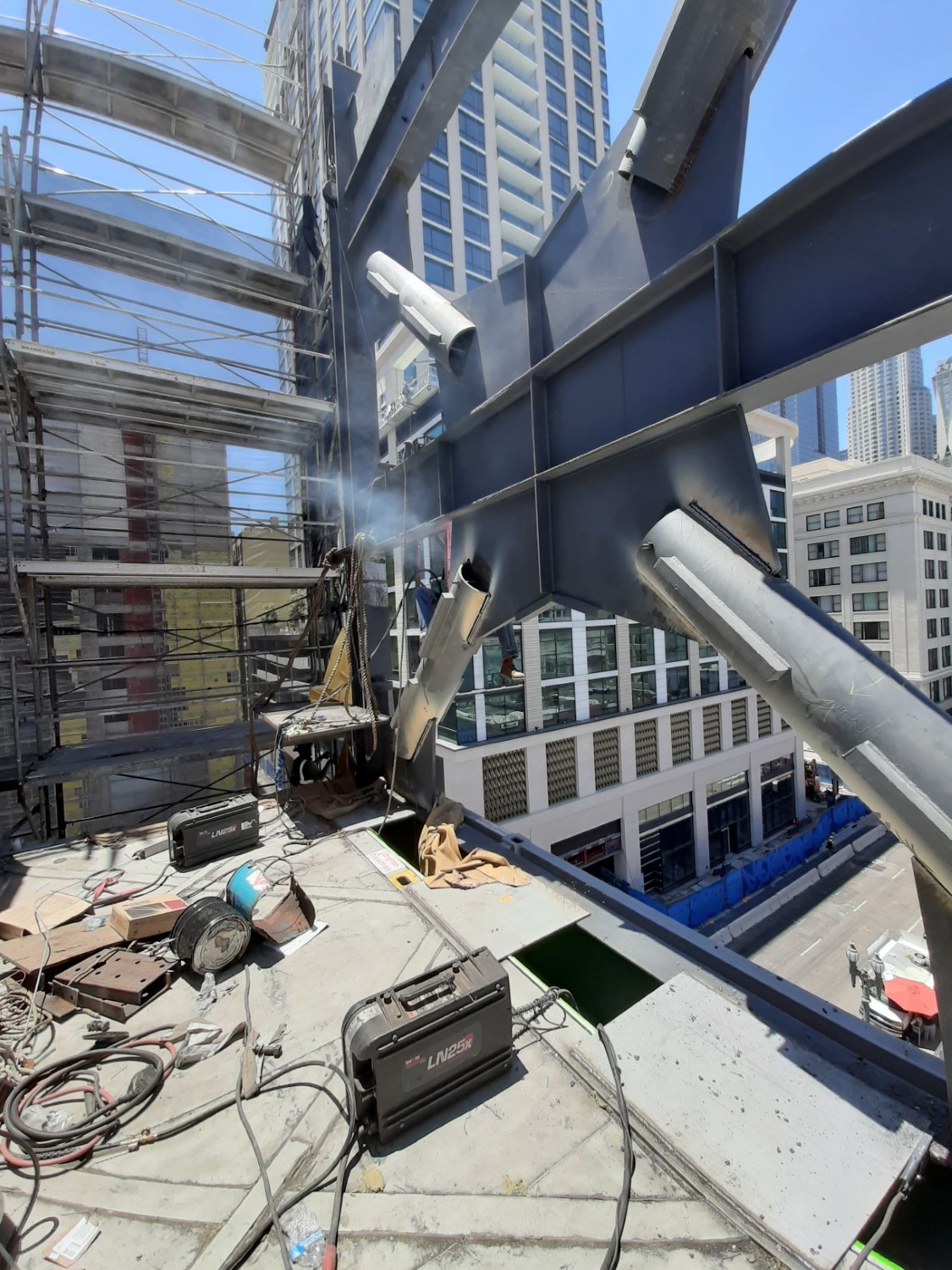 The citizenM Los Angeles Downtown, an 11-story, 315-guest room building, was predominantly constructed from prefabricated modular units shipped from abroad. Mortensen enlisted JD2 for the project, and our team came up with an innovative solution to bring the units from 'shipper' status to 'ready to install' status. We designed custom spreader beam assemblies for each unit size and fabricated all the structural steel. We're thrilled to have been part of yet another architecturally groundbreaking project. If you need expert steel erection services, including out-of-the-box projects like this one, JD2 is the partner to call.