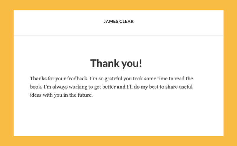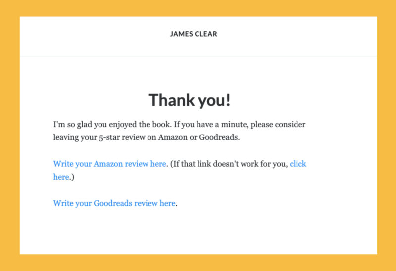 Or in another strategy, James Clear did this really well in an email after I bought his book, Atomic Habits (which I highly recommend, by the way).