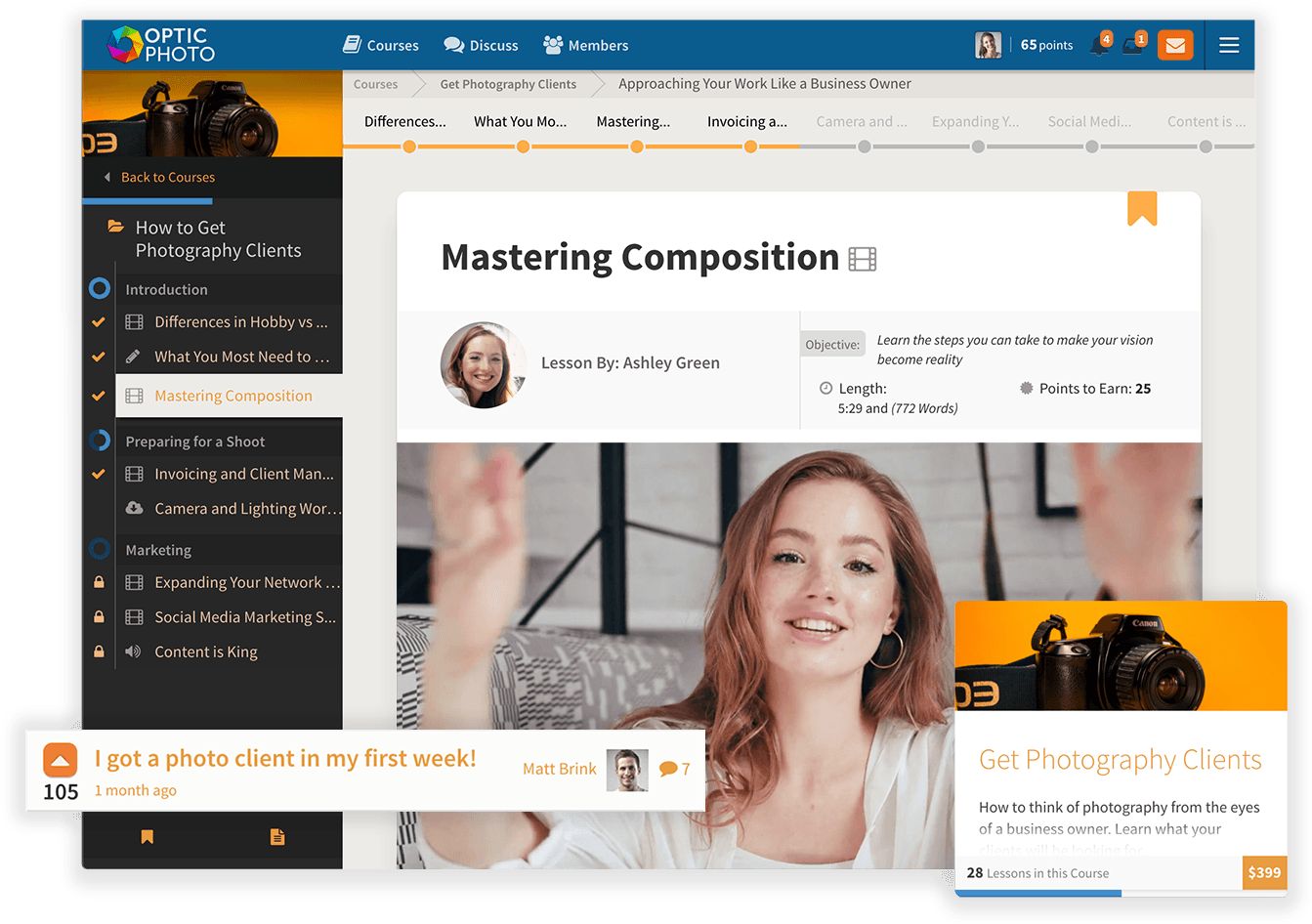 - Create forums for your course participants and add gamification to the experience with course completion points