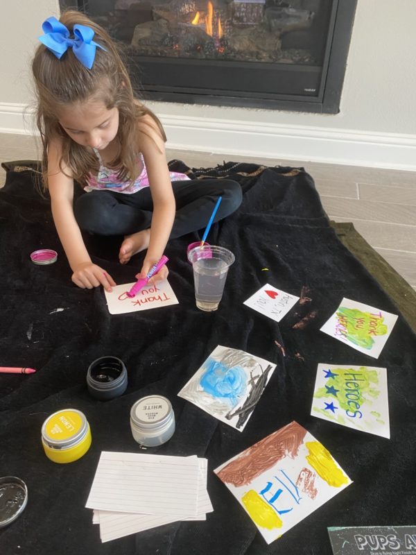 These are unsettling, weird times. No matter how old your kiddos are, chances are that they’ve felt some of the stress in the air. It’s important to focus on what we have to be grateful for and to recognize the heroes who provide the rest of us the essentials we need to remain safe and healthy. My favorite activity with my kid (pictured above) has been creating thank-you cards for our community helpers. We’ve taken the time to acknowledge health care providers, grocery store workers, EMTs, police officers, firefighters, postal workers, and others who are bravely showing up for work every day and risking their lives.
