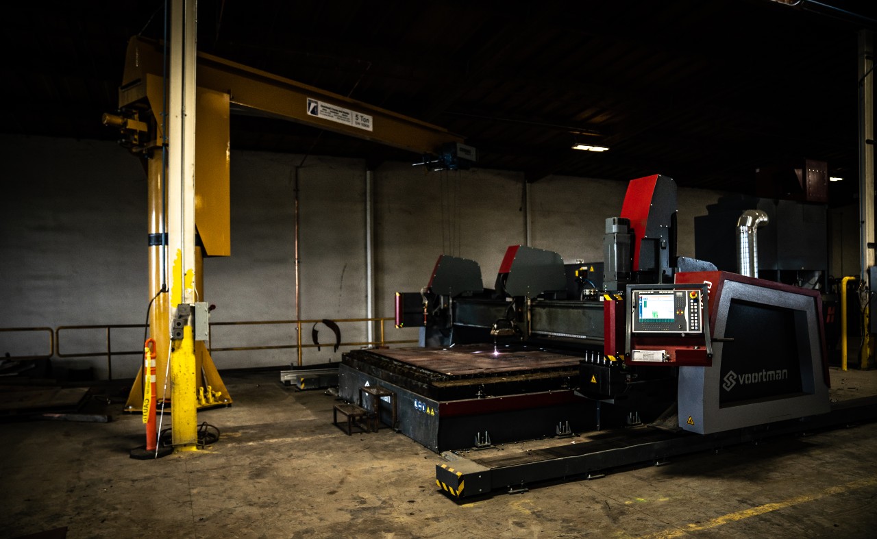 Our CNC Plasma Table has a 10' X 20' table. We can plasma cut 10 gauge to 3.25" steel and oxy cut 10 gauge to 8" steel. It also has a 10 spindle turret that can mill, tap, and countersink holes.
